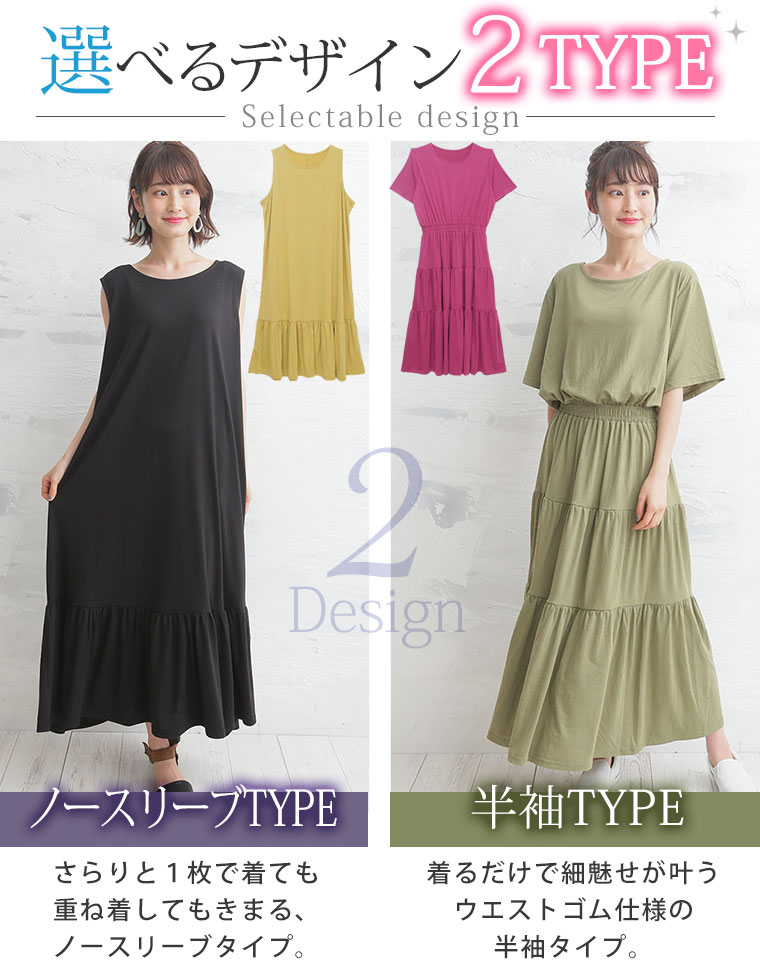 UV・接触冷感 選べる2デザインさらりと嬉しい細魅せティアードワンピース