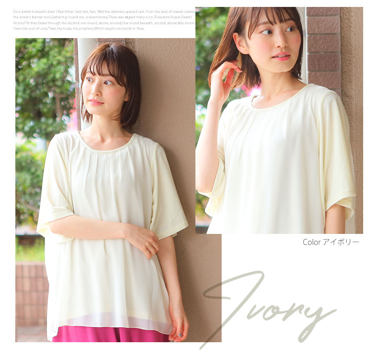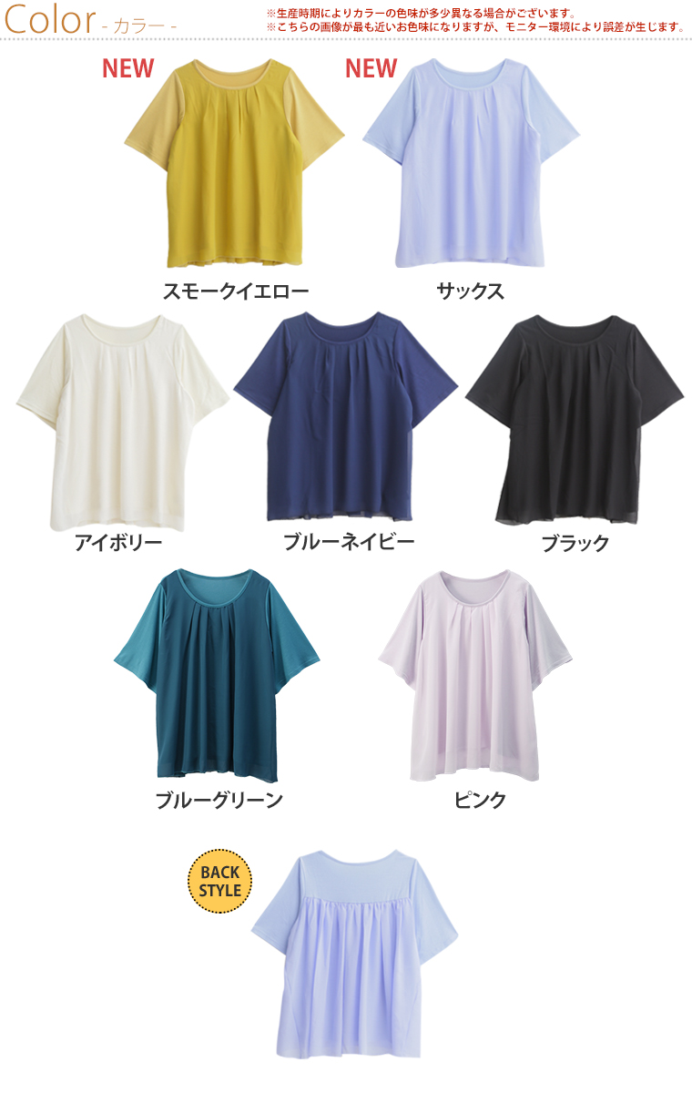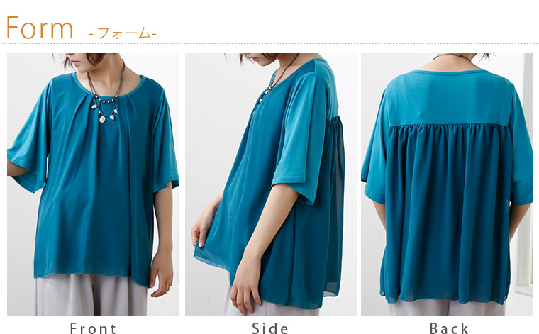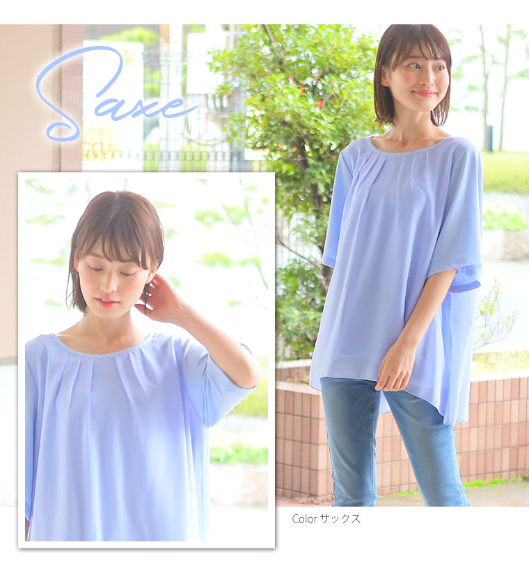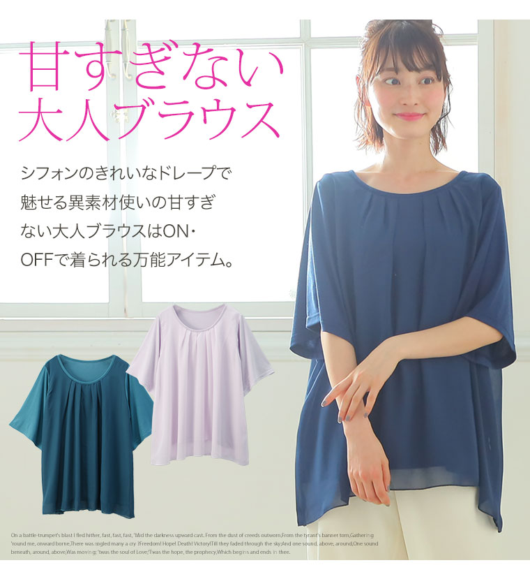 シフォンのドレープが美しい、異素材使いの大人の爽やかシフォンブラウス