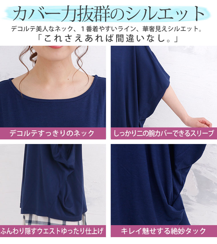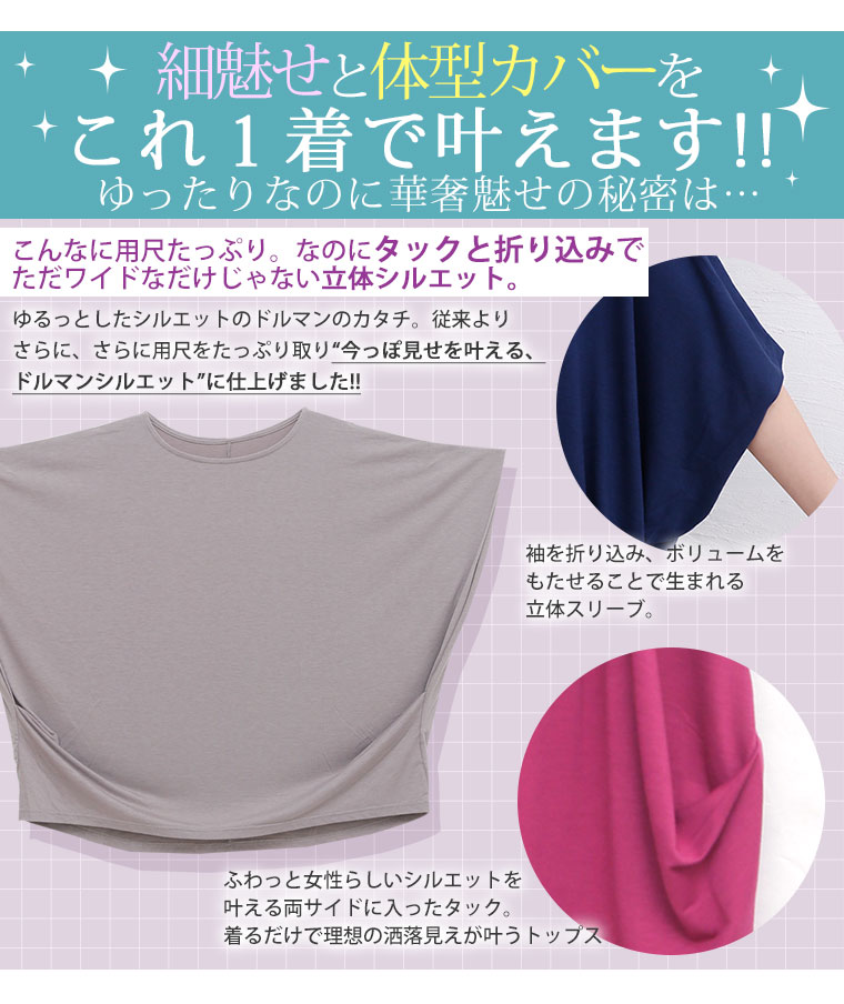 UV・接触冷感 ゆるシルエット 華奢魅せ 美人 裾タック ドルマン Tシャツ