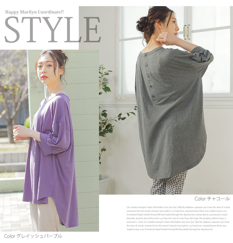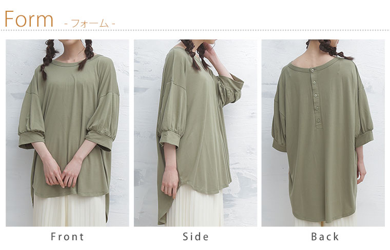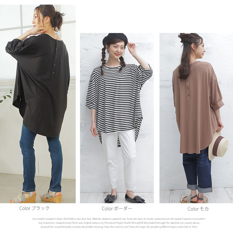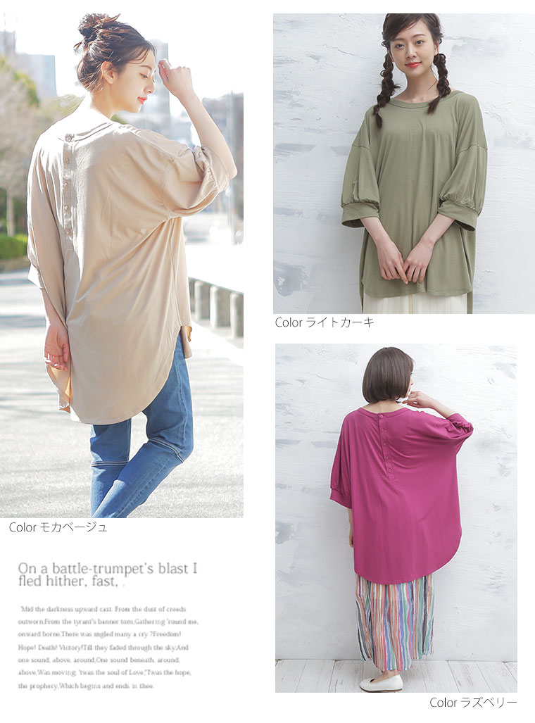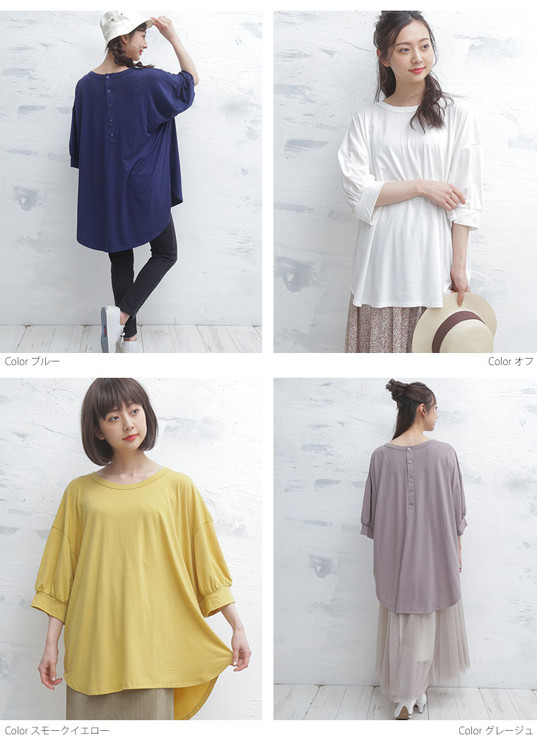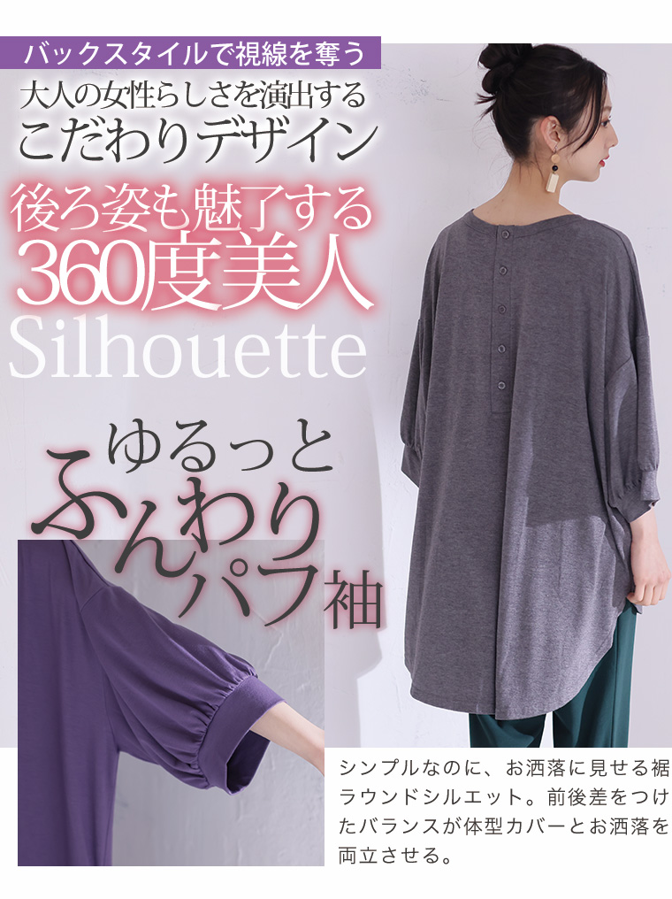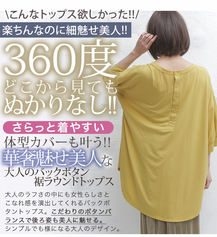 360度美人シルエット!着るだけお洒落!どんなボトムとも合わせやすい バックボタンゆるトップス