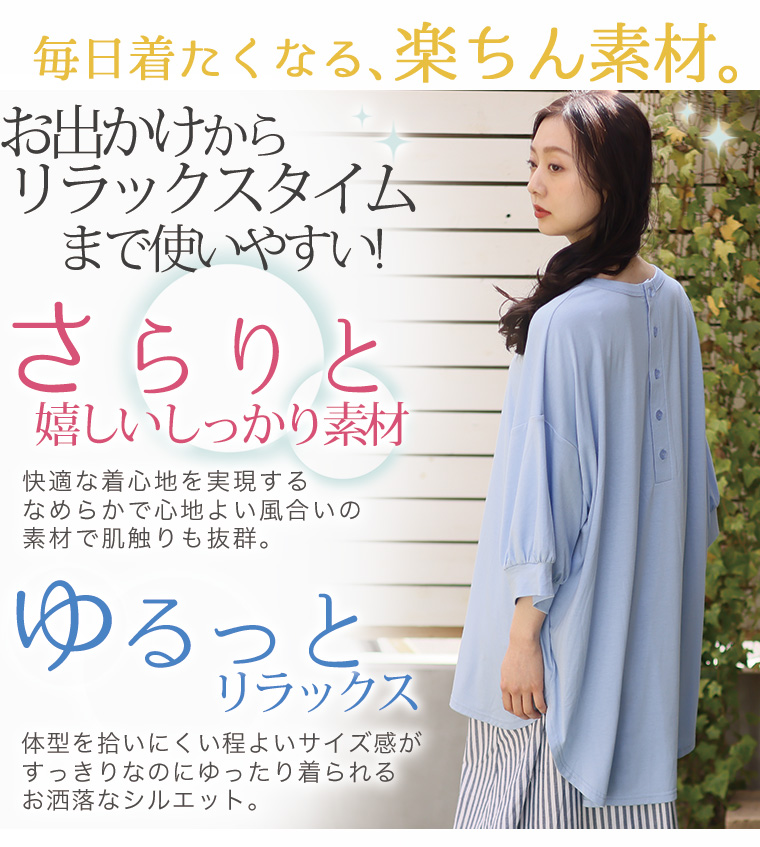 HAPPY COOL お肌を守る嬉しい7つの機能!UV・接触冷感 バックボタンゆるトップス