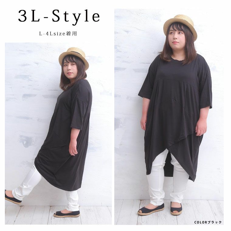 他の画像を見る オリジナル ワンピ デザインワンピ LL 3L 4L 5L 6L 夏 夏物 夏服 夏用 ぽっちゃり ゆったり カジュアル ナチュラル プラスサイズ 二の腕カバー マリリン【選べる丈】カットジョーゼット Iライン チュニック / ワンピース | 大きいサイズの通販ならハッピーマリリン 価格 ¥ 2,490 税込 4.50 在庫切れ お気に入りに登録する