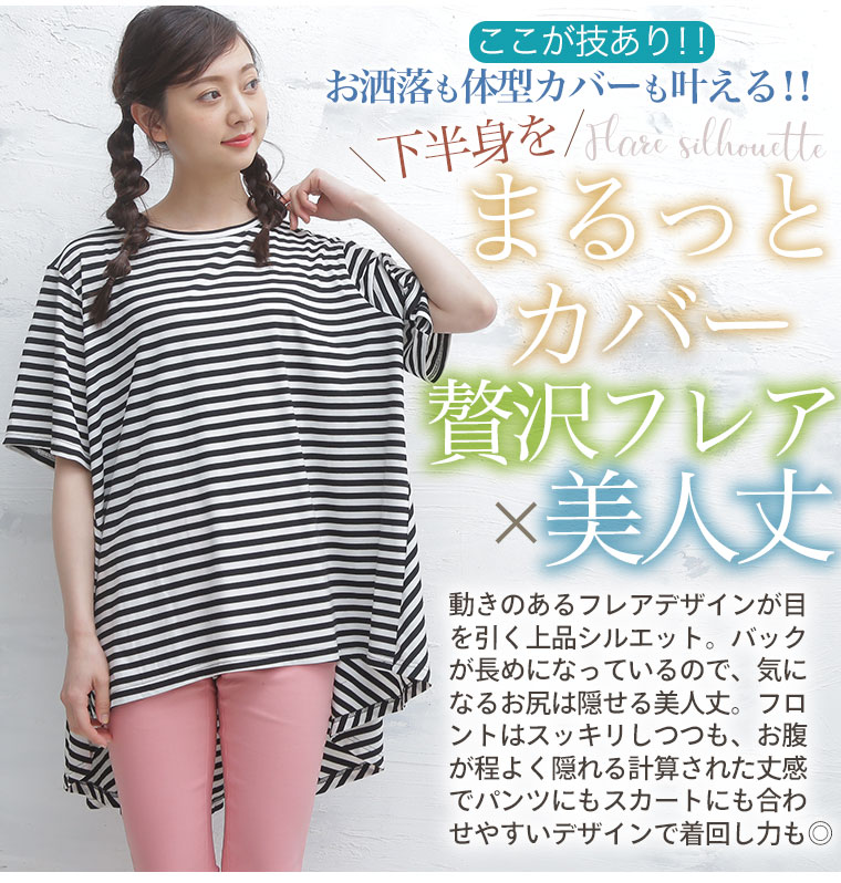 6. 大きいサイズ HAPPYCOOL お肌を守る嬉しい7つの機能! UV・接触冷感 バック フレア シルエット トップス