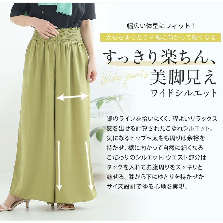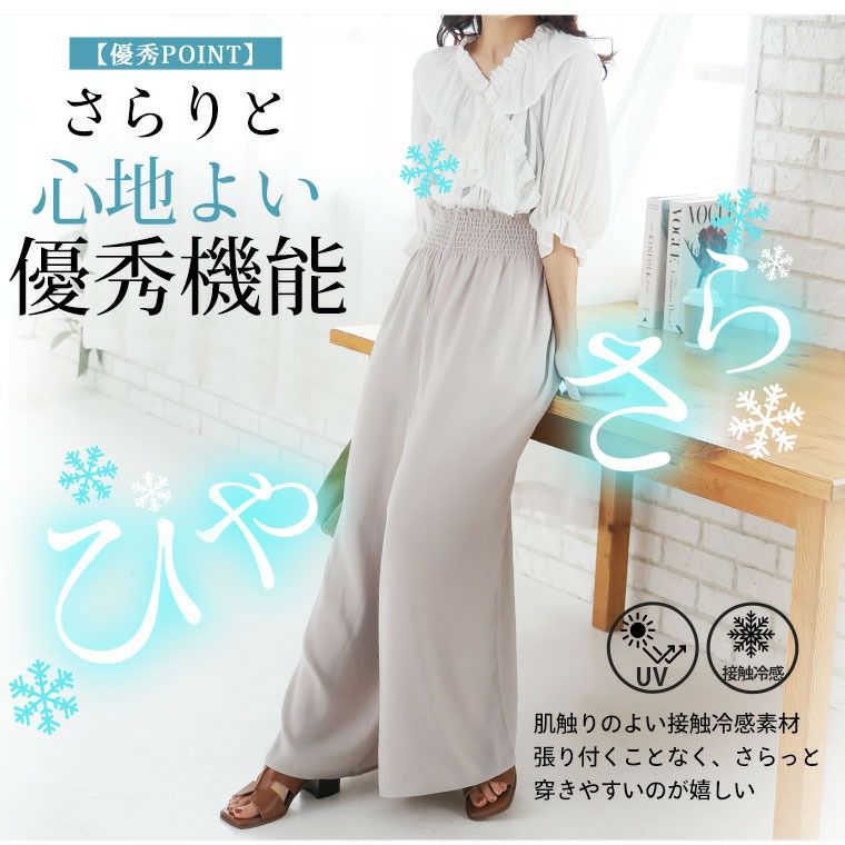 他の画像を見る ボトムス LL 3L 4L 5L 6L 夏 夏物 夏服 夏用 ぽっちゃり ゆったり イージーケア シワになりにくい 接触冷感 綺麗が続く! お腹すっきり魅せ! 楽して 美脚 接触冷感 シャーリング ワイドパンツ お腹 【ウェストゴム】【ストレッチ】 | 大きいサイズの通販ならハッピーマリリン SALE 定価 ¥ 2,990 のところ 価格 ¥ 2,390 税込 3.33 お気に入りに登録する