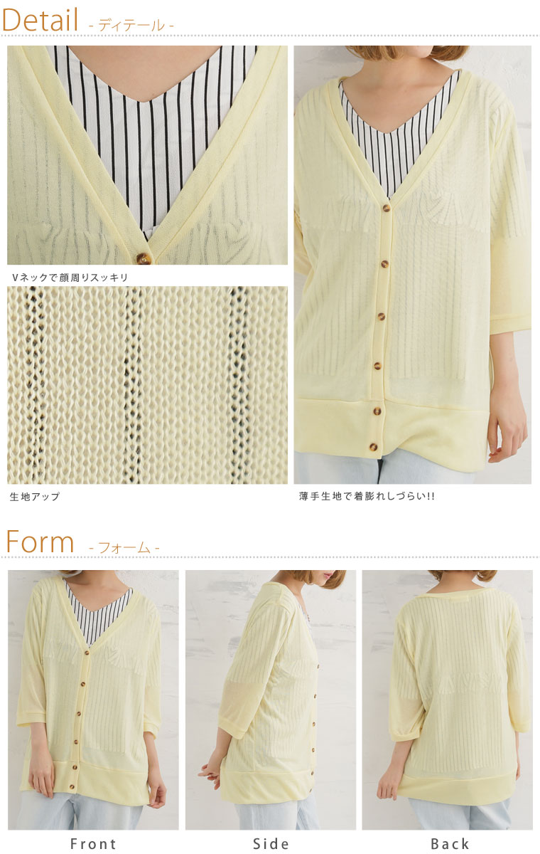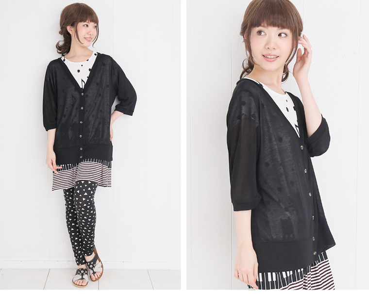 薄手生地で年中活躍すること間違いなしなカーディガンです。