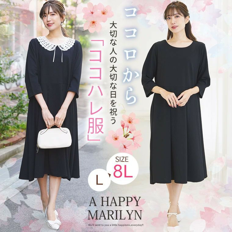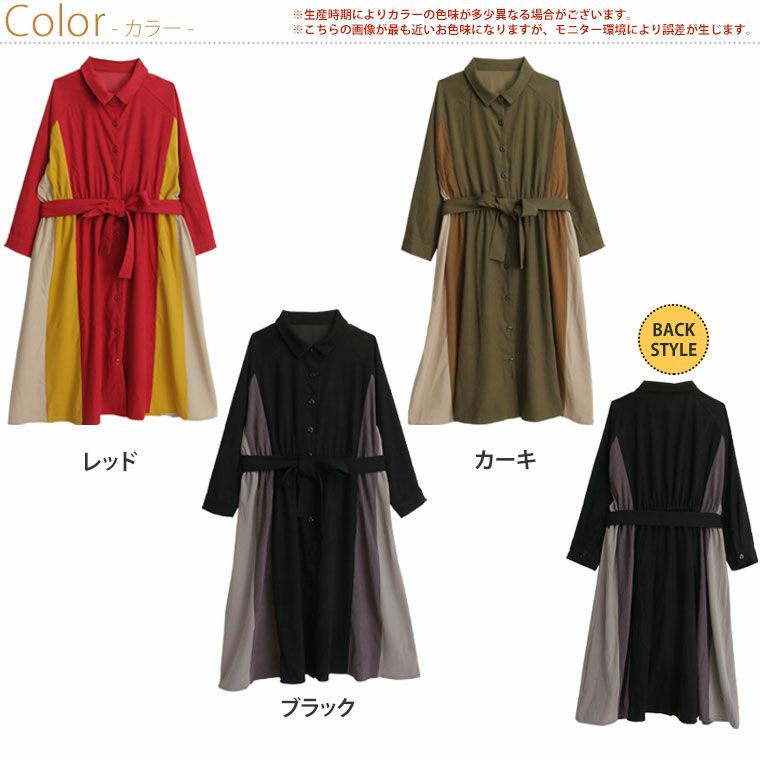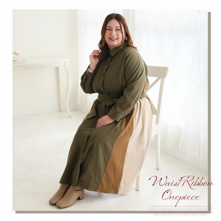 オリジナル ワンピ デザインワンピ LL 3L 4L 5L 6L 秋 秋物 秋服 冬 冬物 冬服 ぽっちゃり ゆったり lafarfa コラボ プラスサイズ 【ラファモプロデュース】 配色切替え ウエストリボン ワンピース (大橋ミチ子) ラファーファ | 大きいサイズの通販ならハッピーマリリン