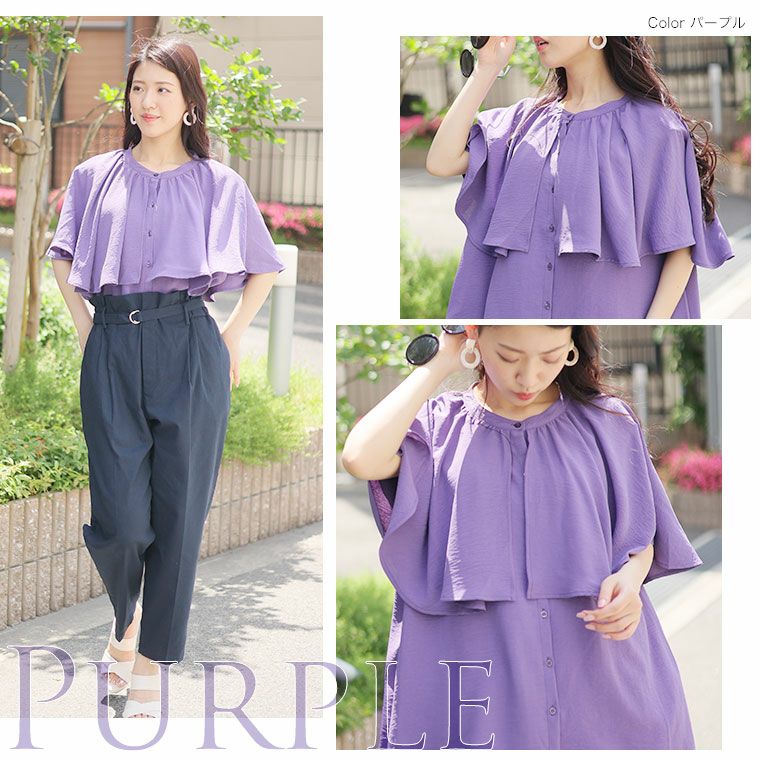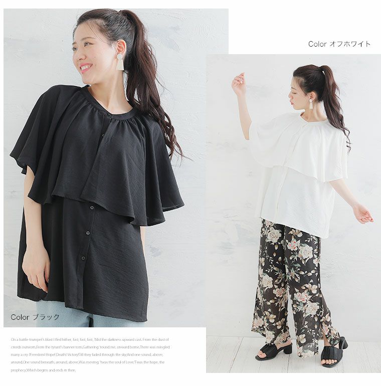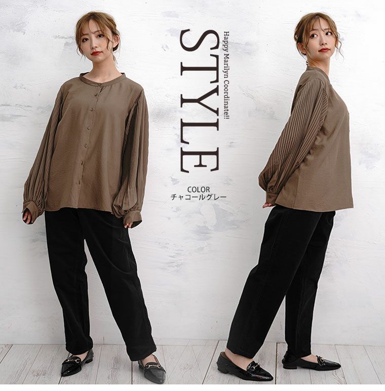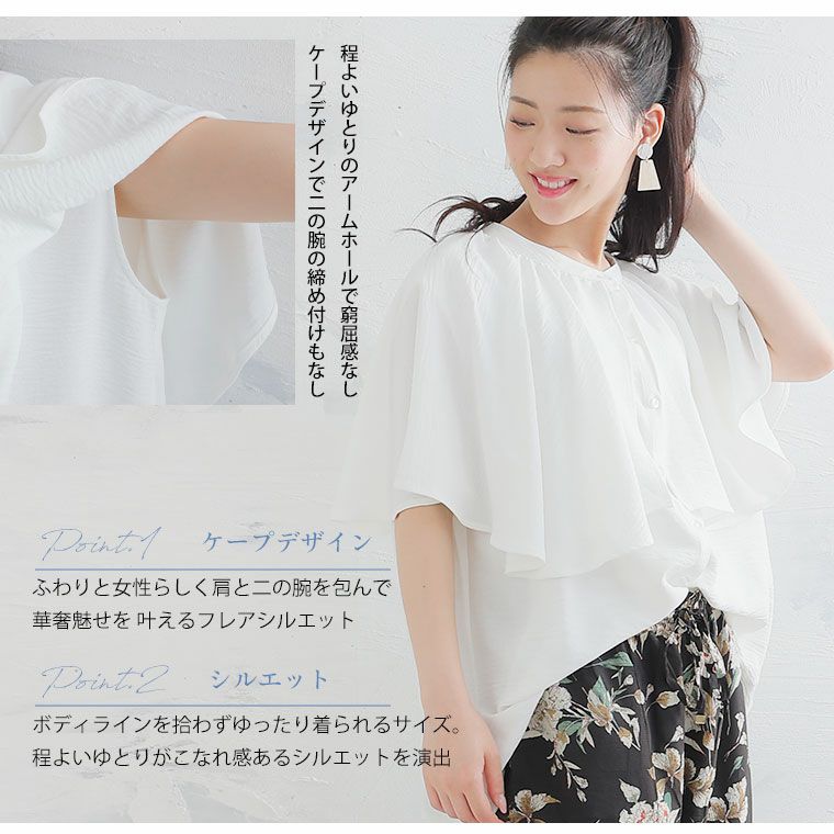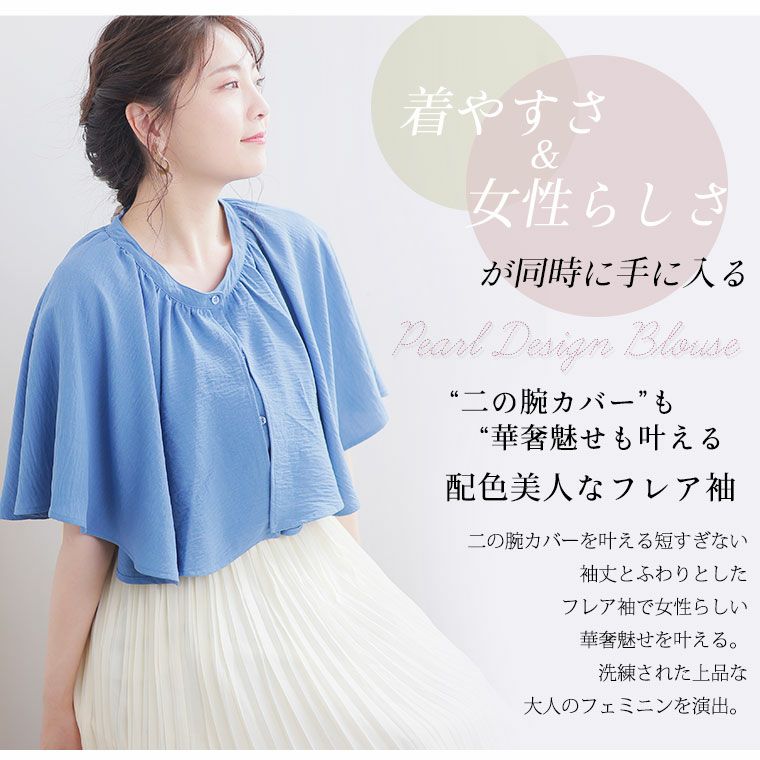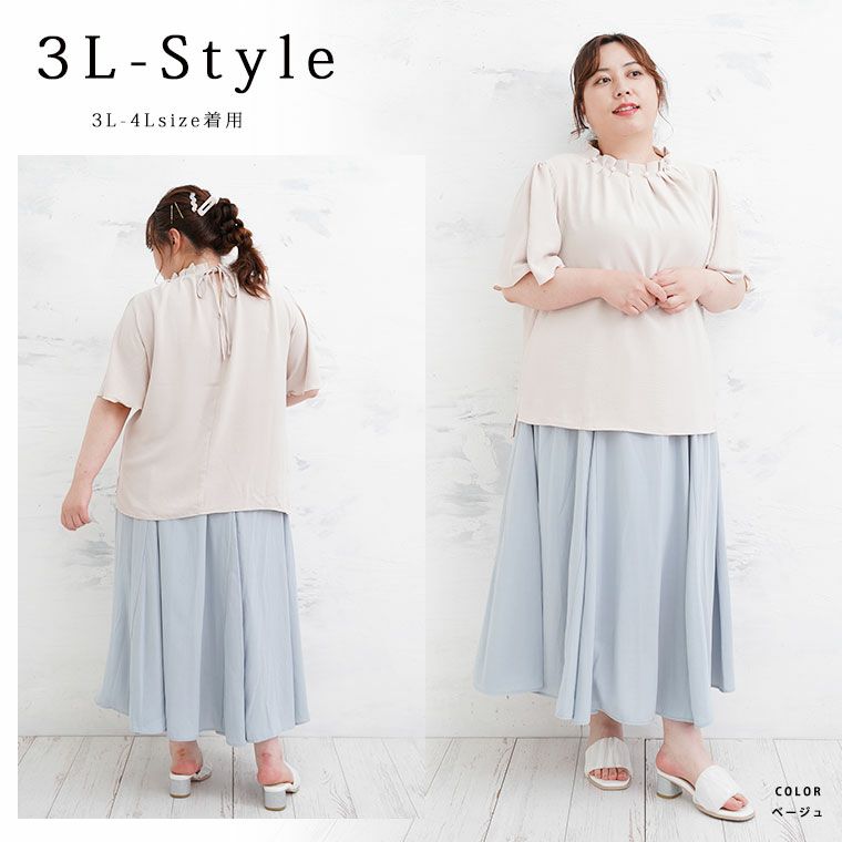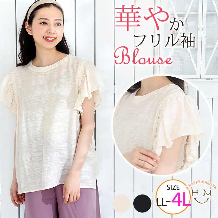 シャツ トップス LL 3L 4L 夏 夏物 夏服 夏用 ぽっちゃり ゆったり カジュアル ナチュラル プラスサイズ 二の腕カバー 春 【effortless mode】華やぎ美人 さらり上品 シルキージョーゼット プリーツ フリルスリーブ ブラウス | 大きいサイズの通販ならハッピーマリリン