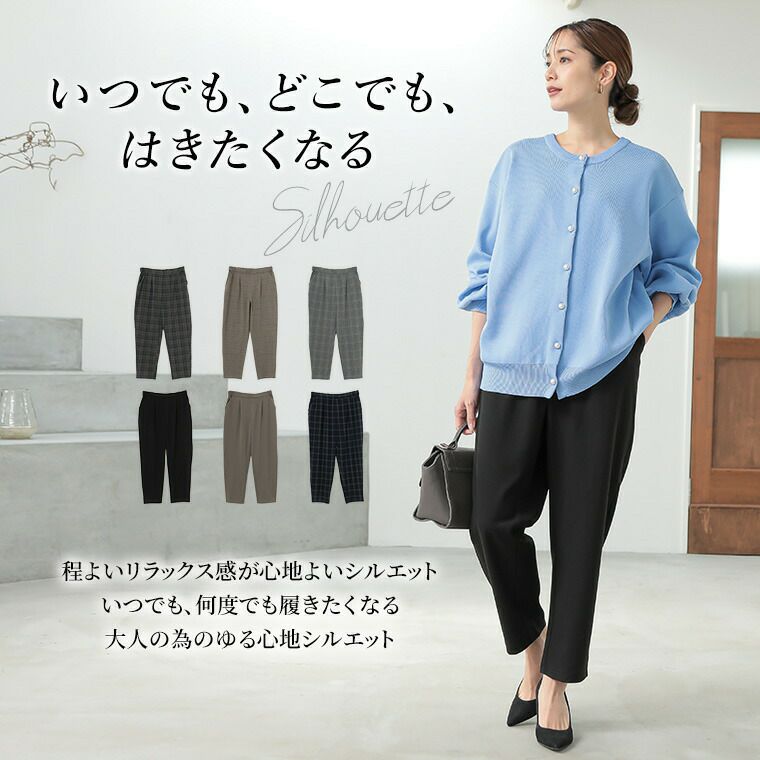 ボトムス LL 3L 4L 5L 6L 冬 お腹 太もも お尻 腰周り Rin あったかいのにスッキリ綺麗 TR両面起毛 ストレッチ テーパードパンツ チェック 無地 オフィス 大人 ビジネス 通勤 ママ 美脚 楽ちん【ストレッチ】【ウェストゴム】 | 大きいサイズの通販ならハッピーマリリン