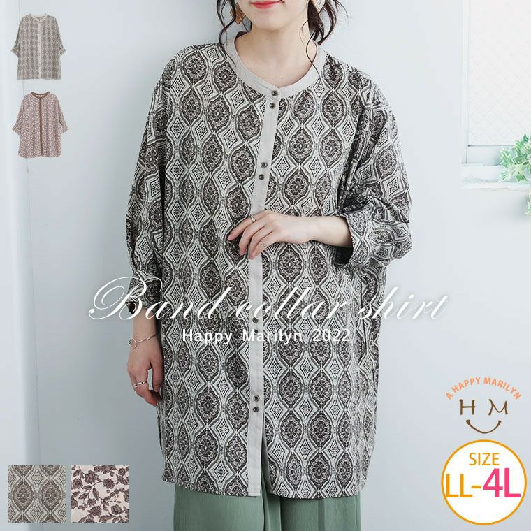 ブラウス トップス LL 3L 4L 夏 夏物 夏服 夏用 ぽっちゃり ゆったり かわいい おしゃれ カジュアル ナチュラル プラスサイズ きれいめ 上品 ガーリー 七分袖 ダマスク柄 小花柄 春 七分袖 バンドカラー シャツ | 大きいサイズの通販ならハッピーマリリン