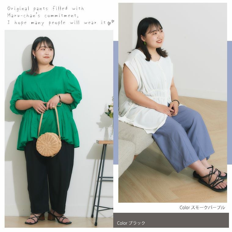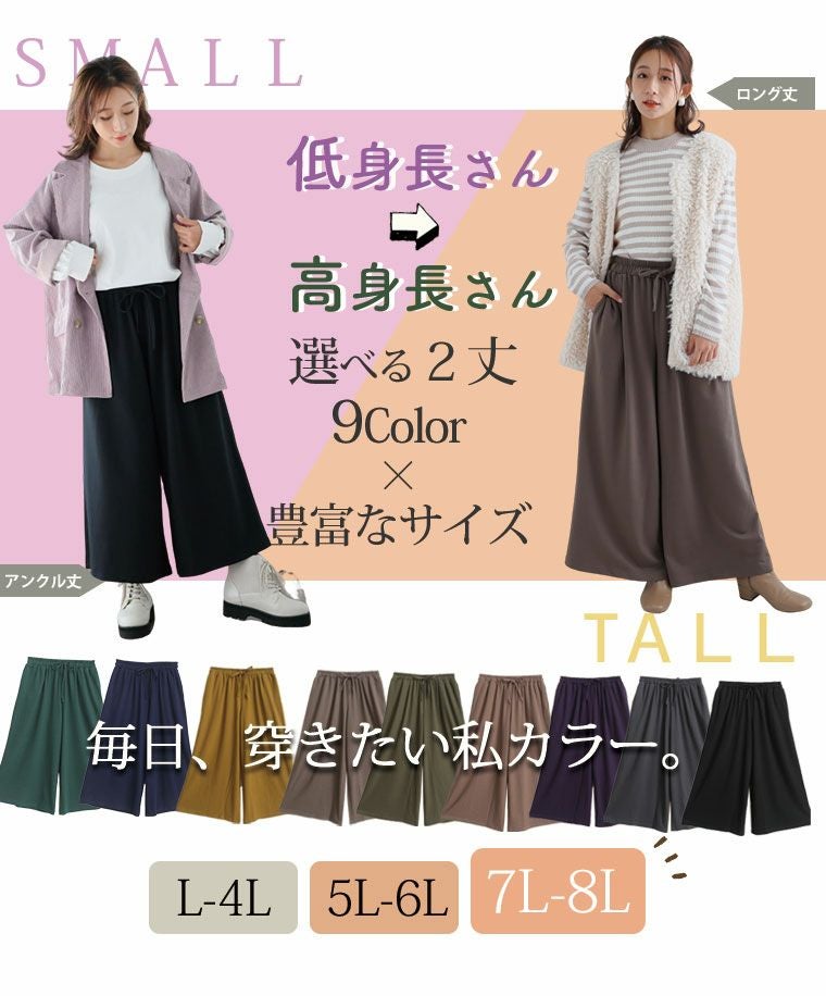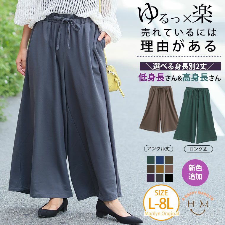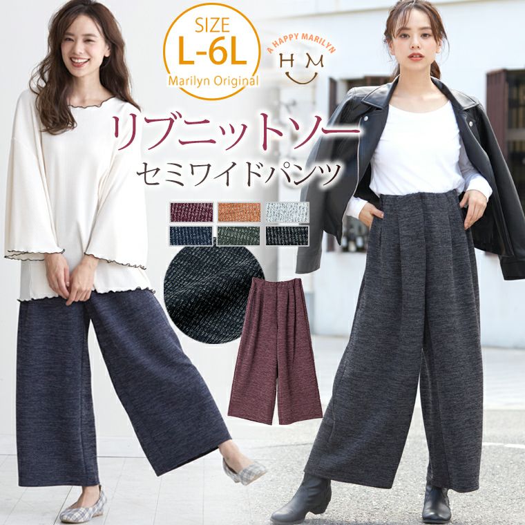 オリジナル パンツ ボトムス LL 3L 4L 5L 6L 秋 秋物 秋冬 ぽっちゃり かわいい 可愛い カワイイ おしゃれ オシャレ お洒落 カジュアル ナチュラル 腰周り 腰周り お尻 太もも 【ストレッチ】【ウェストゴム】 ニットソー 10分丈 ワイドパンツ | 大きいサイズの通販ならハッピーマリリン