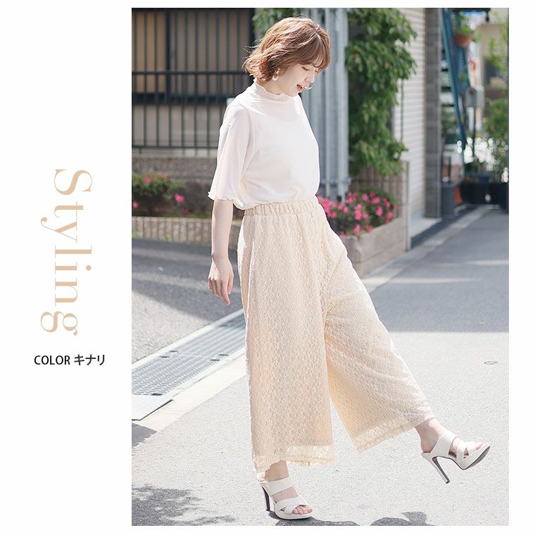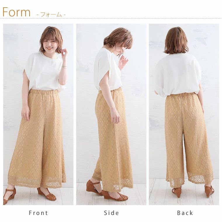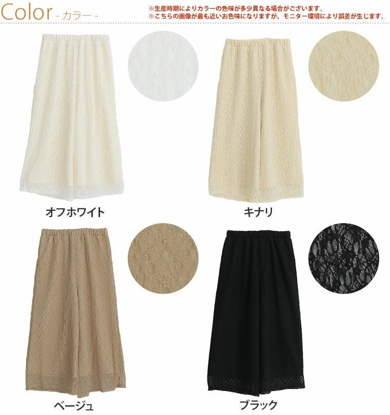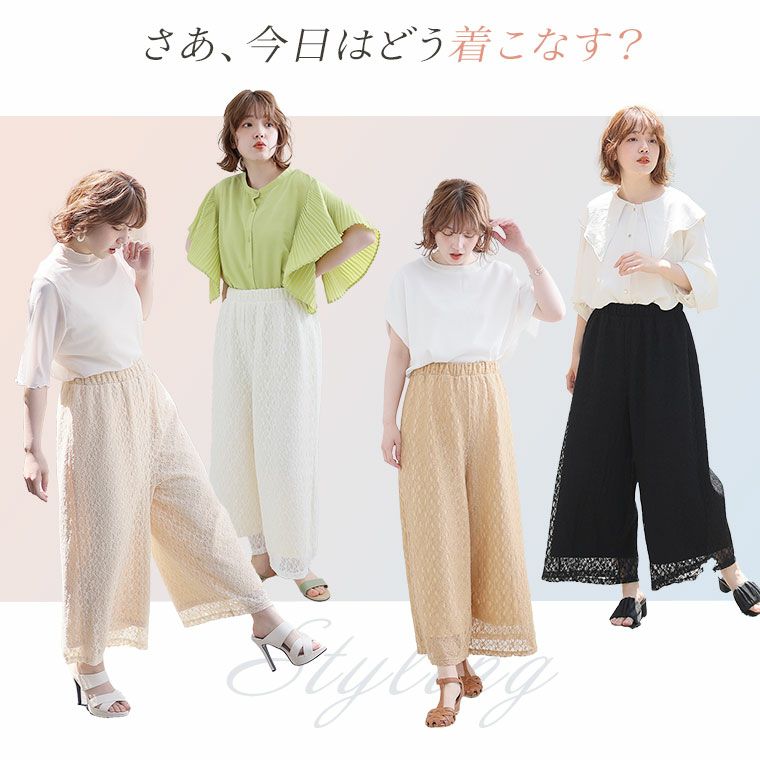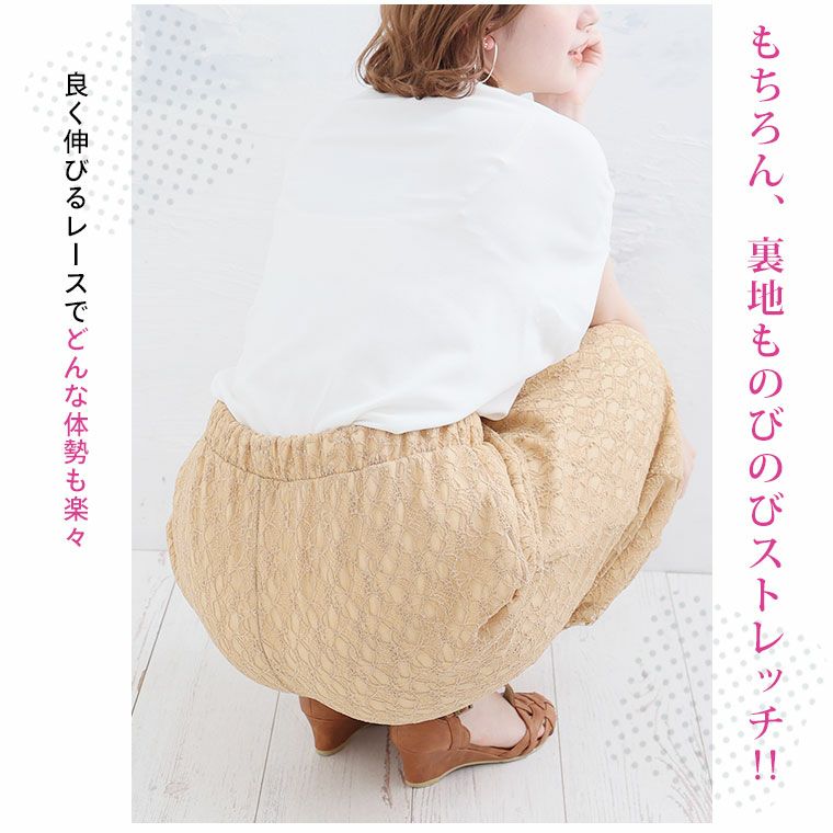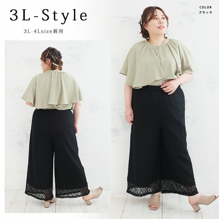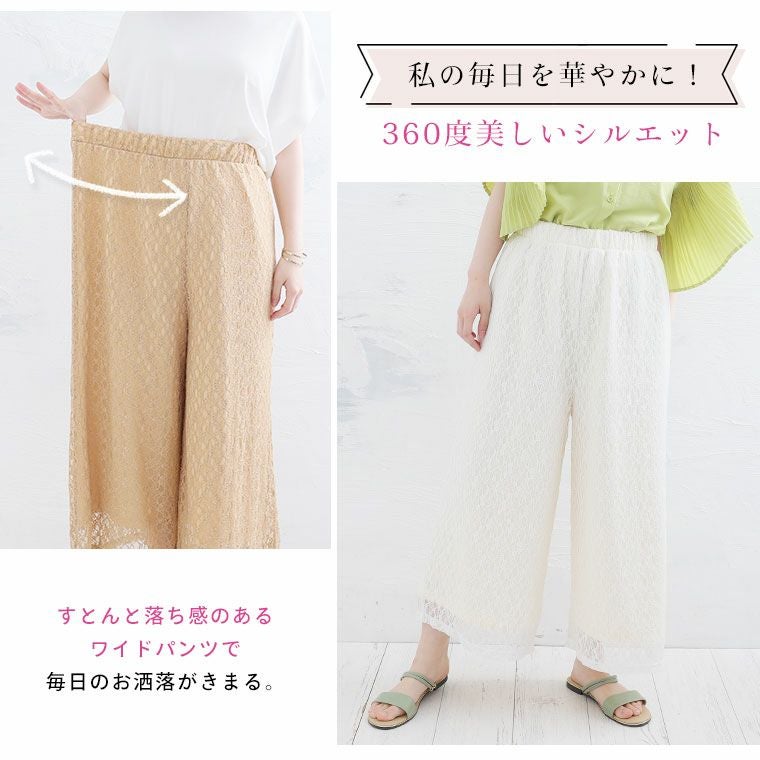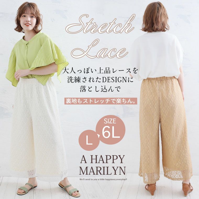 オリジナル ボトムス LL 3L 4L 5L 6L 夏 夏物 夏服 夏用 ぽっちゃり ゆったり お腹 太もも お尻 腰周り レース ストレッチ 楽ちんパンツ カジュアル プラスサイズ ストレッチレースで楽ちん綺麗シリーズ ワイドパンツ【ウェストゴム】【ストレッチ】 | 大きいサイズの通販ならハッピーマリリン