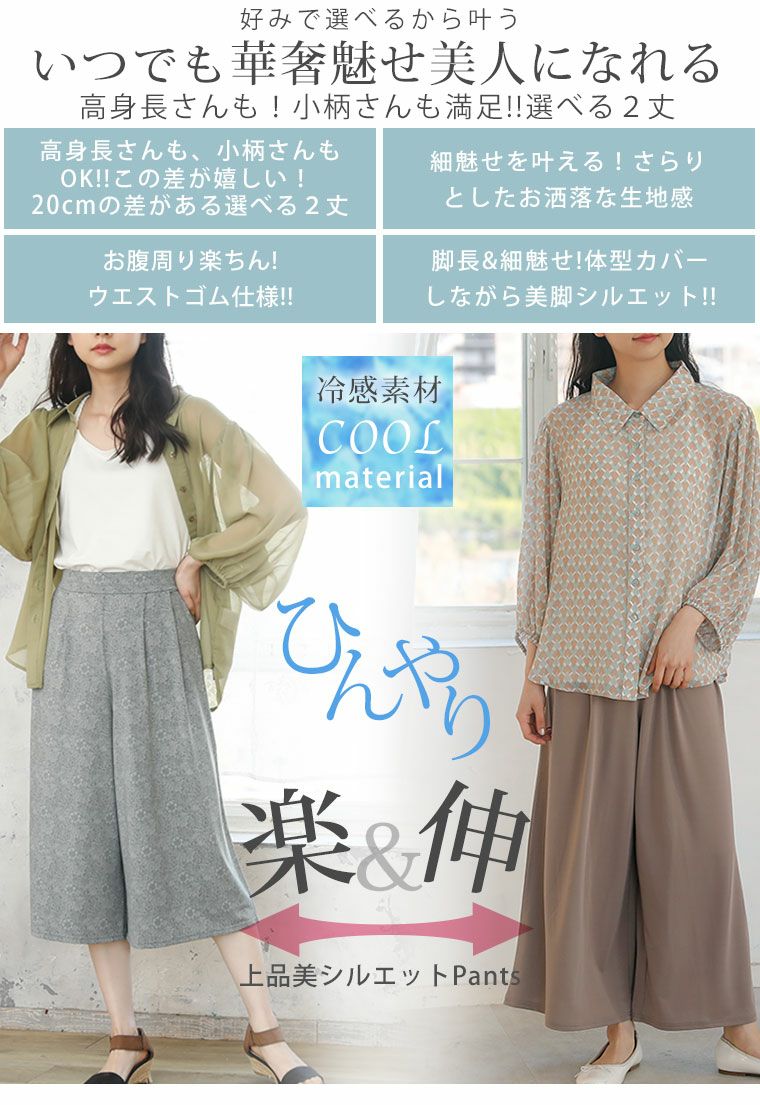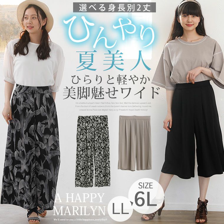 オリジナル カラーパンツ ボトムス LL 3L 4L 5L 6L 7L 8L 夏 夏物 夏服 夏用 ぽっちゃり ゆったり プラスサイズ【ウェストゴム】【ストレッチ】 ひんやり楽ちん! 身長別に選べる2丈 無地・柄選べる 接触冷感 レーヨン 美シルエットパンツ | 大きいサイズの通販ならハッピーマリリン