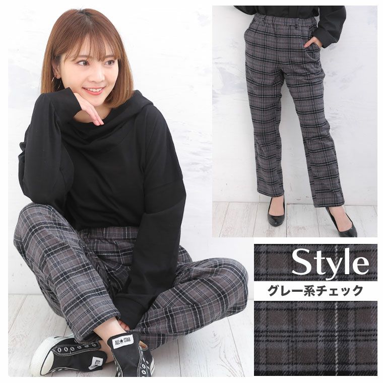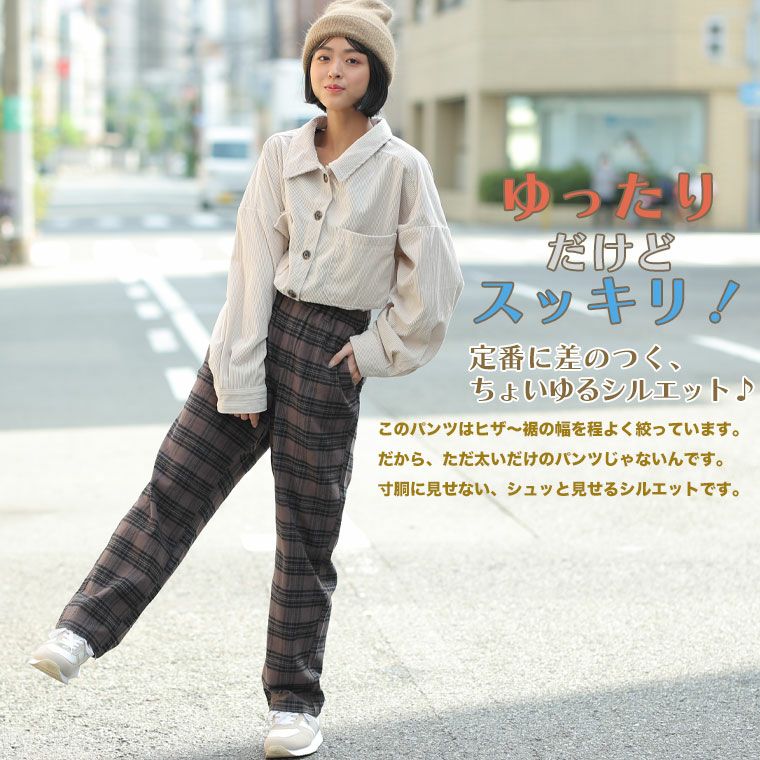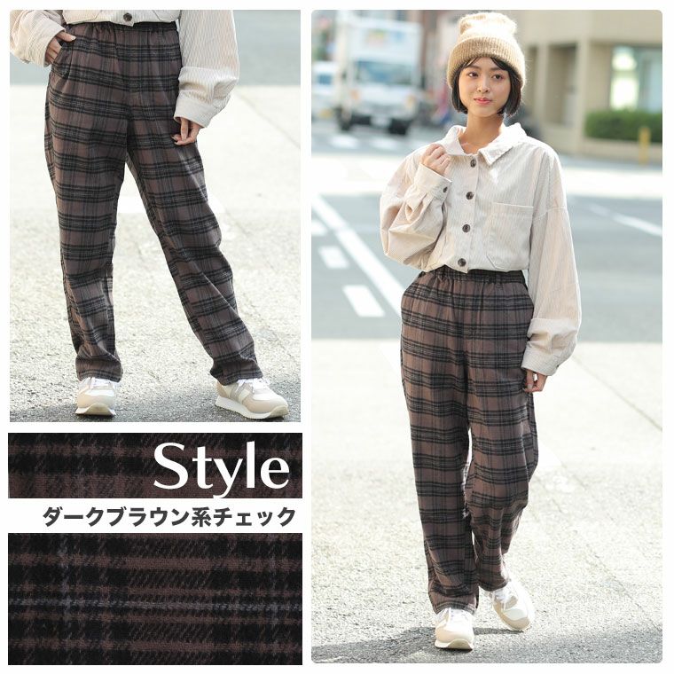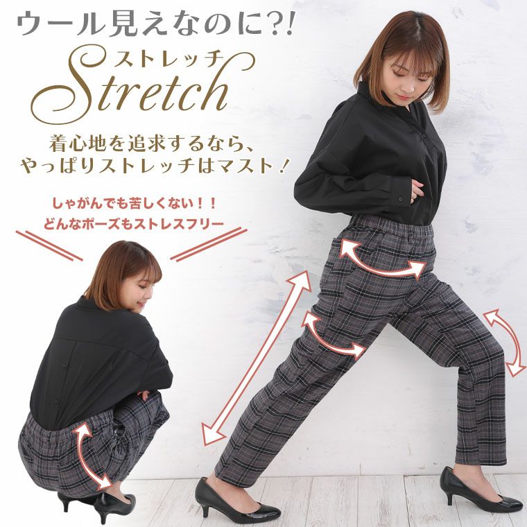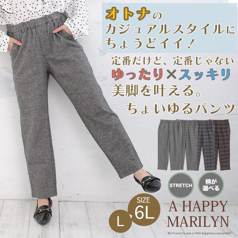 オリジナル カラーパンツ ボトムス LL 3L 4L 5L 6L 秋 秋物 秋服 冬 冬物 冬服 ぽっちゃり ゆったり お腹 太もも お尻 腰周り カジュアル プラスサイズ【ウェストゴム】【ストレッチ】 ちょいゆる ウーリッシュコットン ストレッチ チェックパンツ | 大きいサイズの通販ならハッピーマリリン