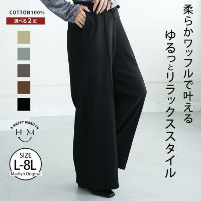 足首の太さが気になる方にまずおすすめしたいのが、ハイウエストのワイドパンツ。ワイドシルエットは足首のラインを拾わず、下半身をストンと包み込むため、足首そのものを目立たせずにカバーできます。