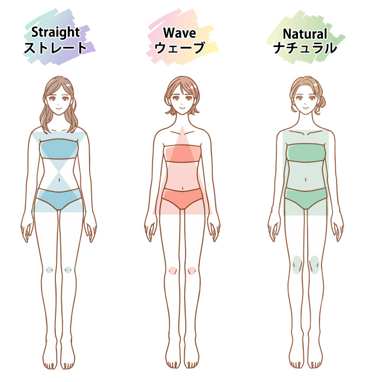 まずは、骨格診断で、骨格ウェーブの特徴を知りましょう。なお、骨格診断は体重や身長に変化があったり、年齢を重ねたりしても基本的に変わることはありません。まずは、自分の体の特徴を知り、自分が骨格ウェーブなのかどうか確認しましょう。