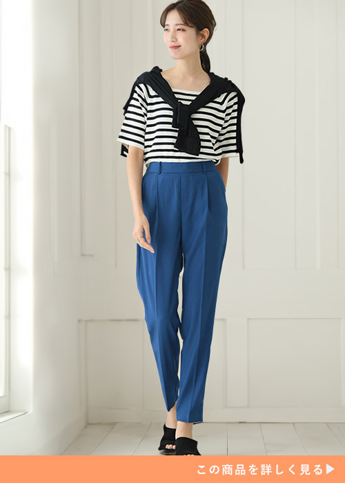 パンツ|きれいめテーパードパンツならボーダーも大人見え
