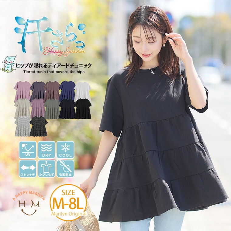 お腹カバー【ハッピーさらりん】 ヒップが隠れる ティアード チュニック