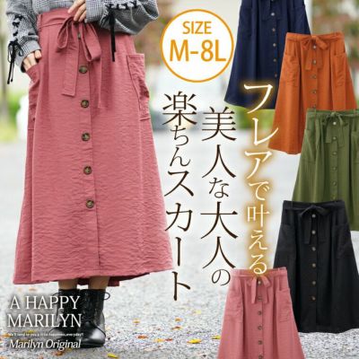 大人の楽ちん ボタンデザイン ワーク風 リボン付き ロング丈 フレアースカート | 大きいサイズの通販ならハッピーマリリンのレビュー