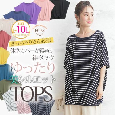 【オススメ】 無地とボーダーから選べる!! ぽっちゃりさん必見!! 体型カバーが得意な 裾タック 美シルエット 半袖 トップス【メール便可1】 | 大きいサイズの通販ならハッピーマリリンのレビュー
