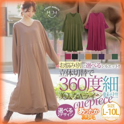 選べる シルエット! 立体切替 で 360度 美人な 細魅せ Aライン 裏起毛 長袖 ワンピース | 大きいサイズの通販ならハッピーマリリンのレビュー