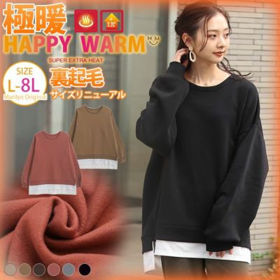 HAPPYWARM お肌に優しい嬉しい7つの機能/発熱/保温・保湿/吸水速乾!!HEAT裏起毛 着ぶくれ回避の レイヤード風 デザイントップス 裏毛 トレーナー | 大きいサイズの通販ならハッピーマリリンのレビュー
