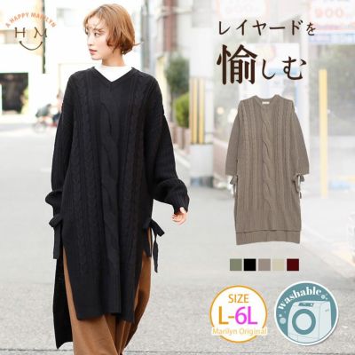 アクリルバルキー 脇スリット リボン付き ワンピース | 大きいサイズの通販ならハッピーマリリンのレビュー