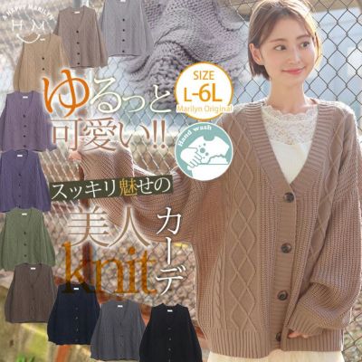 洗える ウォッシャブル アクリル バルキーケーブル 長袖 Vネック パフ袖 ニット カーディガン | 大きいサイズの通販ならハッピーマリリンのレビュー