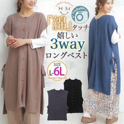 洗える2way 片畦 Vネック 脇リボン ウォッシャブル ニット ロング ベスト | 大きいサイズの通販ならハッピーマリリンのレビュー