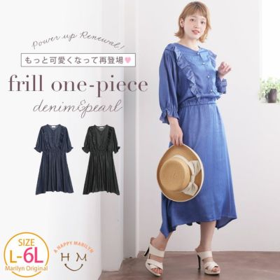 フリルが甘かわいい やわとろ デニム調 ワンピース | 大きいサイズの通販ならハッピーマリリンのレビュー