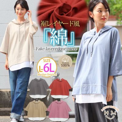 さらりと心地よいさっぱり素材 綿100% ゆるっと細魅せしっかり コットン 裾レイヤード風 パーカー | 大きいサイズの通販ならハッピーマリリンのレビュー
