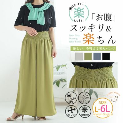 綺麗が続く! お腹すっきり魅せ! 楽して 美脚 接触冷感 シャーリング ワイドパンツ お腹 【ウェストゴム】【ストレッチ】 | 大きいサイズの通販ならハッピーマリリンのレビュー