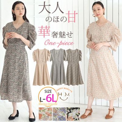 Vネック 袖タック ウエスト シャーリング 花柄ワンピース | 大きいサイズの通販ならハッピーマリリンのレビュー