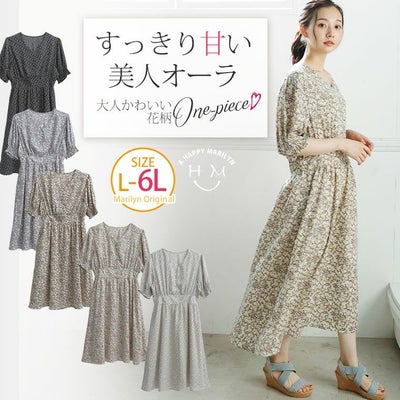五分袖 Vネック 花柄 ハイウエスト ワンピース | 大きいサイズの通販ならハッピーマリリンのレビュー