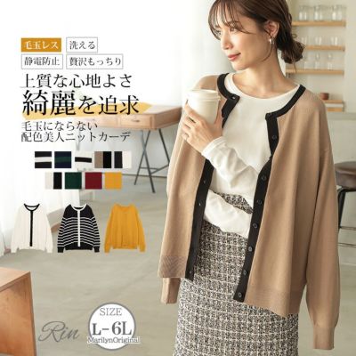 Rin 綺麗を追求 毛玉にならない サイズ感にこだわったカラーで魅せる 美人配色 ニットカーデ 毛玉レス 抗ピル オフィス 大人 通勤 ママ | 大きいサイズの通販ならハッピーマリリンのレビュー