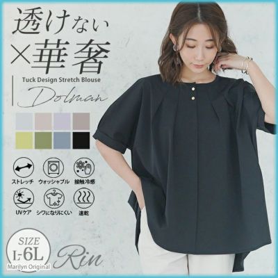 Rin ブラウスの綺麗さ Tシャツの着やすさ! ひんやり シワになりにくい 華奢魅せ美人な 洗練ドルマンタックデザイン ブラウス | 大きいサイズの通販ならハッピーマリリンのレビュー