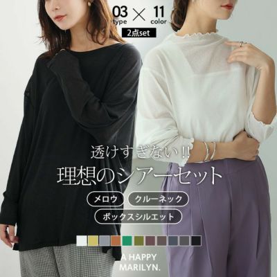 普段はあまりシアーのトップスは着ないのですが、以前からこちらの2点セットは気になっていました。 セールでお安くなっていたので、透け感がより控えめな感じのチャコール(メロウタイプ)を購入。 買って正解でした!とても上品でお洒落です。 メロウも可愛いし、たくさん着たいです。 同色のタンクトップがセットなのは本当にお得。 色違いでボックスタイプとクルーネックタイプも欲しいです。