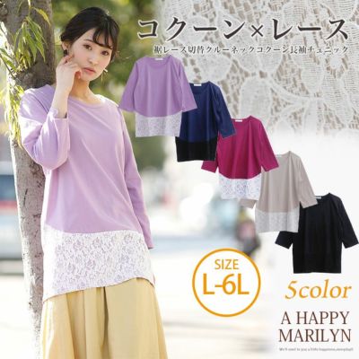 裾レース 切替 七分袖 クルーネック コクーン チュニック | 大きいサイズの通販ならハッピーマリリンのレビュー