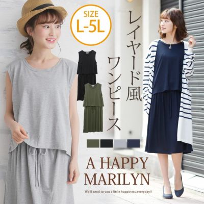 ノースリーブ ブラウジング 紐付き フェイク レイヤード ワンピース | 大きいサイズの通販ならハッピーマリリンのレビュー