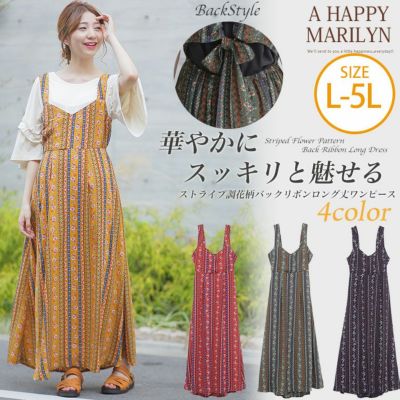 ストライプ調 花柄 ウエスト紐 ギャザー調節可 バックリボン ワンピース | 大きいサイズの通販ならハッピーマリリンのレビュー