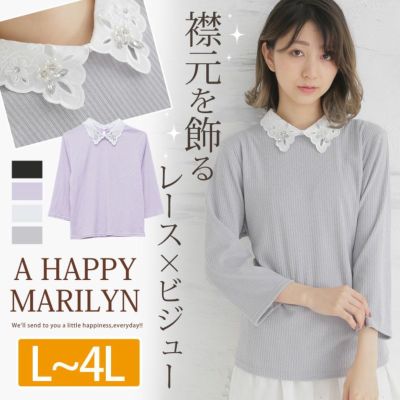襟ビジュー 七分袖 テレコブラウス【メール便可1】 | 大きいサイズの通販ならハッピーマリリンのレビュー