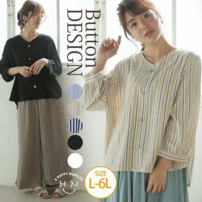 無地と柄から選べる!! 華奢見せ フェイク前立て Vネック ボタンデザイン ボリュームスリーブ 七分袖 ブラウス | 大きいサイズの通販ならハッピーマリリンのレビュー