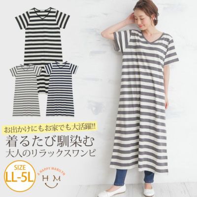 ボーダー柄 半袖 マキシ丈 カットソーワンピース | 大きいサイズの通販ならハッピーマリリンのレビュー