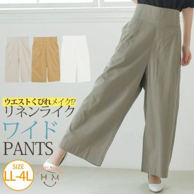 麻調綿 ウエストくびれメイク ロング丈 ワイドパンツ | 大きいサイズの通販ならハッピーマリリンのレビュー