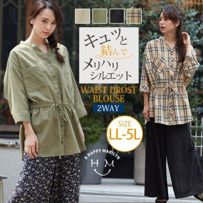 無地とチェックから選べる ウエスト ドロスト 六分袖 ブラウス | 大きいサイズの通販ならハッピーマリリンのレビュー