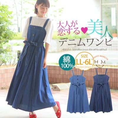 タックが美人な大人のデニム ウエストリボン ジャンパースカート | 大きいサイズの通販ならハッピーマリリンのレビュー