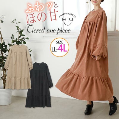 起毛ツイル ランタンスリーブ ティアード ワンピース | 大きいサイズの通販ならハッピーマリリンのレビュー