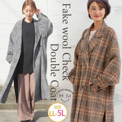 フェイク ウール チェック柄 ダブルコート | 大きいサイズの通販ならハッピーマリリンのレビュー