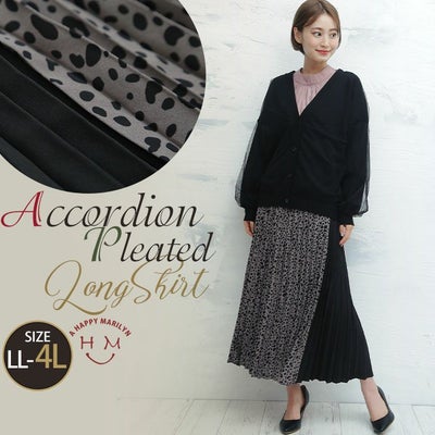ダルメシアン柄 × 無地 配色 アコーディオン プリーツ ロング スカート | 大きいサイズの通販ならハッピーマリリンのレビュー