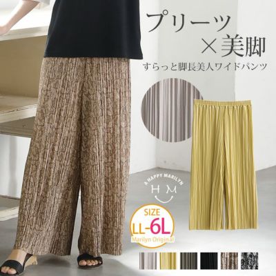 無地 と 柄 で選べる 上品 リラックス な ランダムプリーツ ワイドパンツ | 大きいサイズの通販ならハッピーマリリンのレビュー