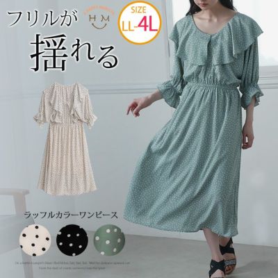 ジョーゼット ランダムドット柄 プリント ラッフルカラー ワンピース | 大きいサイズの通販ならハッピーマリリンのレビュー